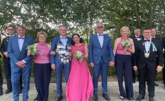 Jürgen Selting holte mit dem 280. Schuss den Vogel von der Stange.Zu seiner Königin wählte er Sabine Brix Möllmann.Den Thron 2023/2024 komplettieren Hermann Dowe mit Martina Selting und Peter Brix mit Irmgard Dowe.